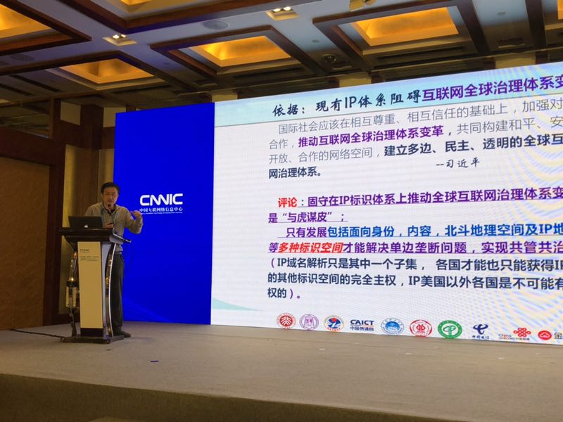 上图 李挥教授在首届中国互联网基础资源大会CNIRC2019上作报告
