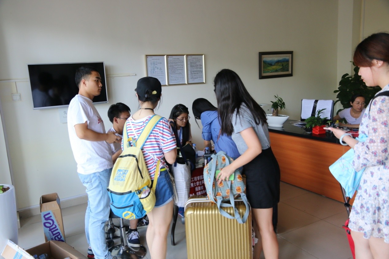 夏令营营员报到处设在校园活动中心,营员首先进行登记报到,然后领取活动过程中的需要用到的物资。