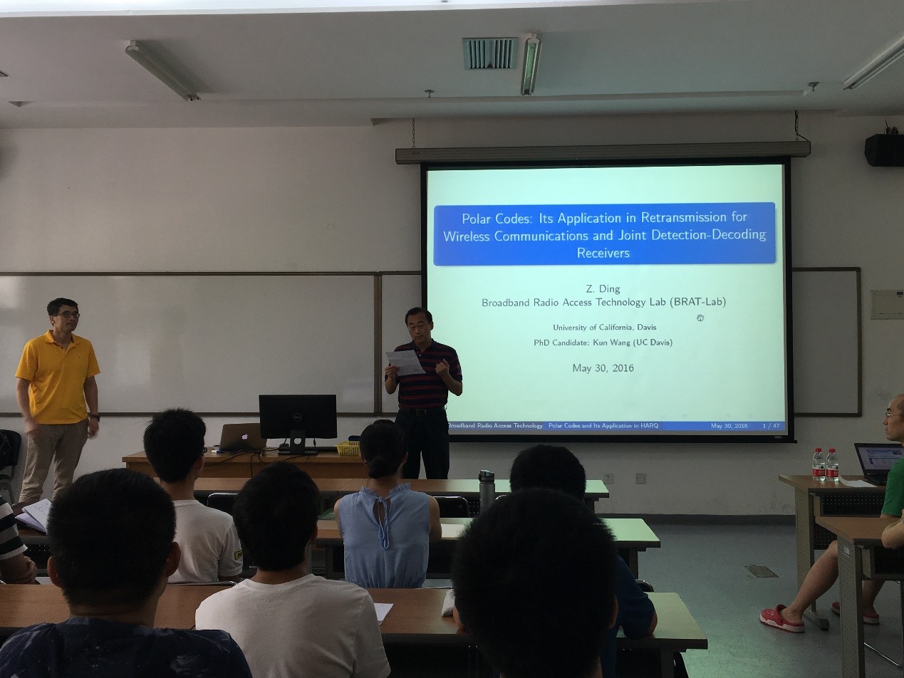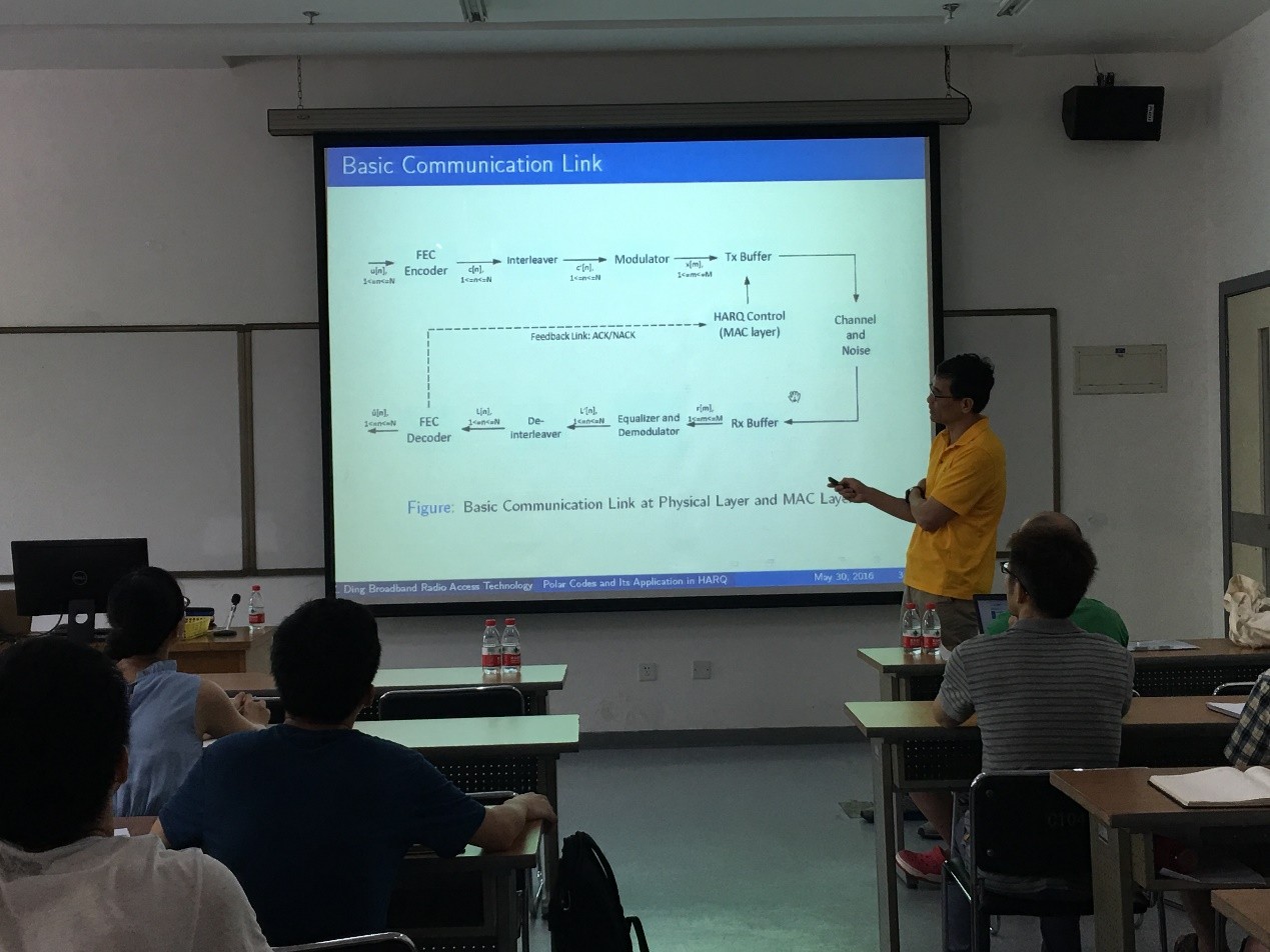 李革教授邀请,在C-102教室做了一场题为“Polar Codes: Its Application in Retransmission for Wireless Communications and Joints Detection-Decoding Receivers”的精彩报告,介绍了极化码在无线通信中的作用及无线通信中最新的接收机结构设计。香香腐宅