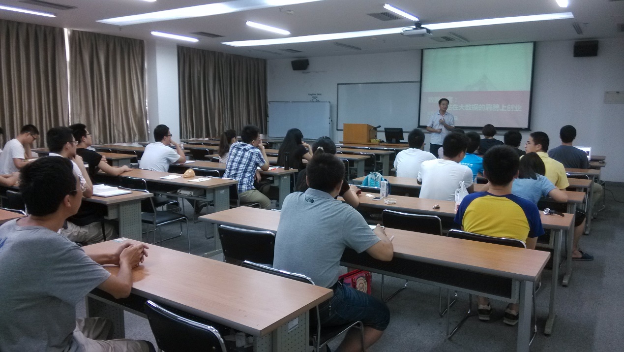 进行学术交流,并在C栋302教室做了题为“数据创客——站在大数据的肩膀上创业”的学术讲座。