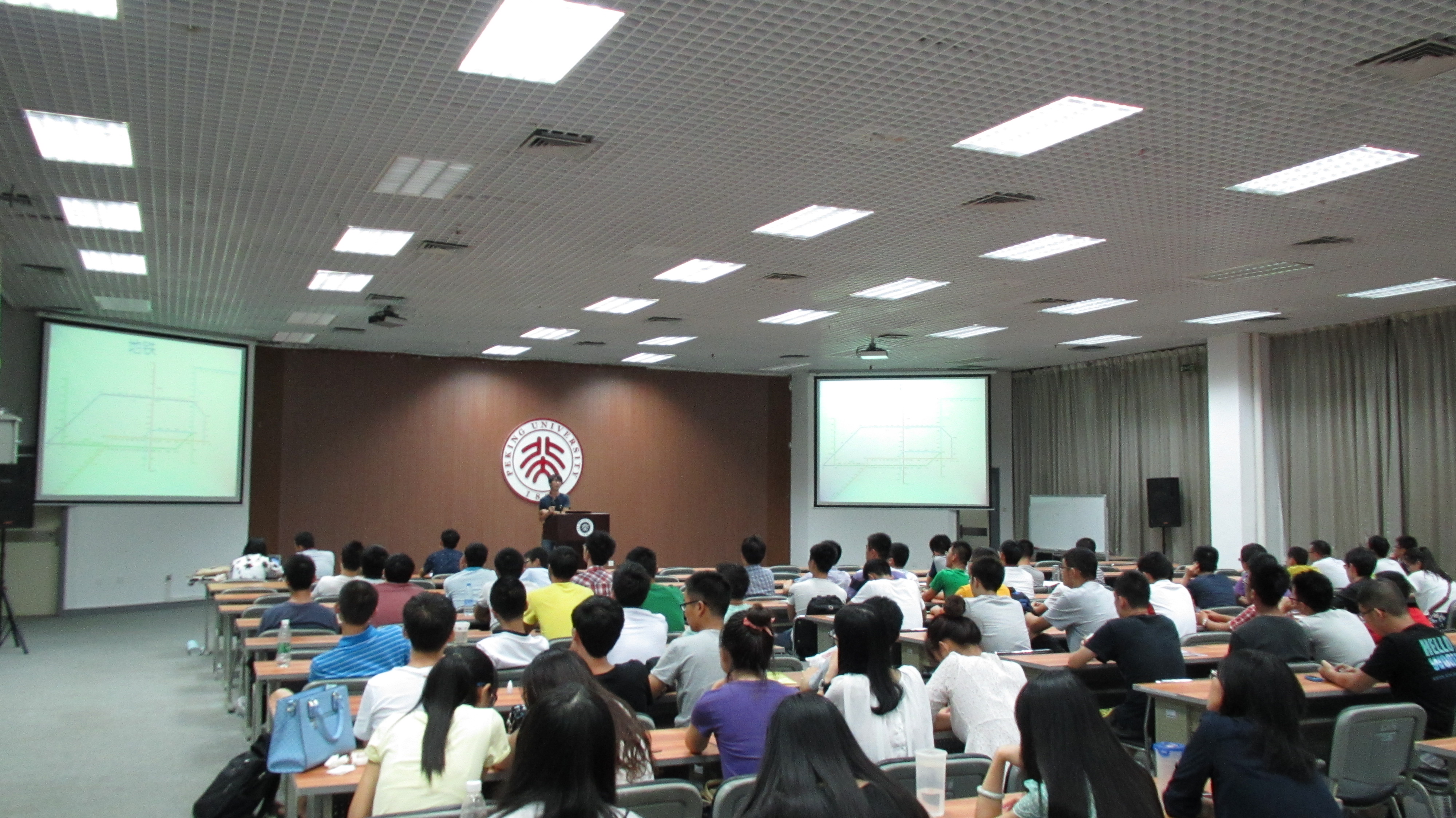 全体新生参加本次交流会,研会主席团作为宣讲嘉宾并主持会议。交流会上,研会副主席曾敬武作为主持首先代表学院研究生会欢迎新同学的到来。接着,研会主管学术的副主席黄武龙就研究生阶段怎样学习的问题向同学们介绍了自己的经验。他鼓励同学们尽量顺应自己的喜好,把自己感兴趣的方面与科研结合起来,合理规划学习进程,争取在三年的研究生生活中真正学到于自己有用的知识,从而更好地走向社会,找到适合自己的工作,为社会贡献出更大的力量。