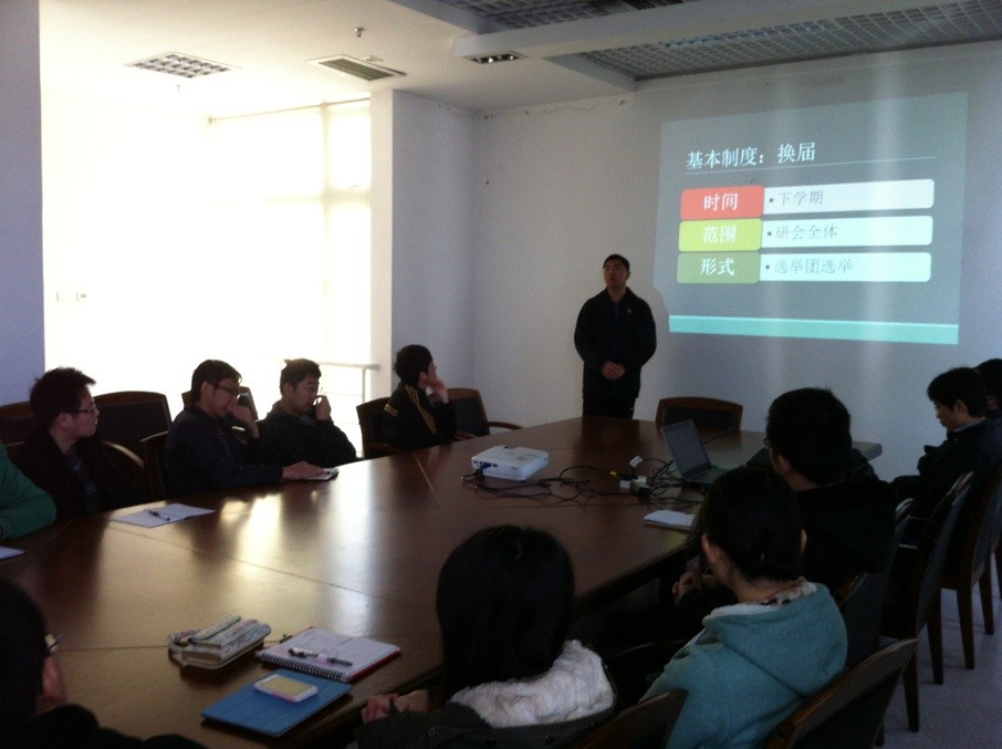 会上,各部门部长首先做部门工作总结。文体部部长周莉莉,生活部副部长陈卓发,组织宣传部部长柴玲玲、郭峰,学术部副部长许凯先后发言,就本部门本学期的工作、取得的成绩及存在的问题等方面作了系统性的总结,并对部门未来的工作进行了展望。随后,研究生会副主席沙文鹏同学发言。沙文鹏同学回顾了本届研会从成立到现在的历程,介绍了研会的定位和发展目标,总结了本届研会取得的成绩。同时,沙文鹏同学着重强调了研会目前存在的问题,指出了研会组织架构上的不足、制度的缺陷、机制的不完善,并对未来研会自身建设问题提出了初步方案。