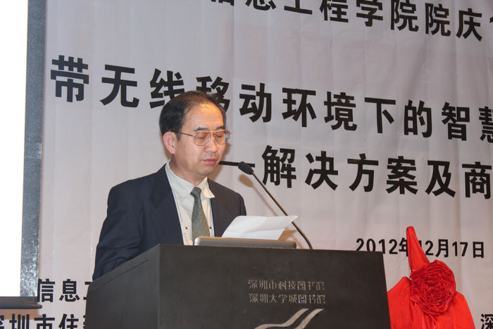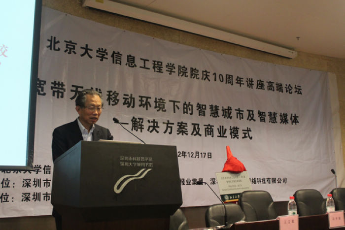 论坛邀请了中国联通科技委主任、中国工程院刘韵洁院士做了题为“中国智能城市发展的机遇和挑战”的主题报告,刘韵洁院士就智慧城市在世界各国发展概况及我国对智慧城市建设的顶层设计、存在问题及解决方案做了深入的分析和探讨。本次论坛还邀请了政府相关部门的领导、行业权威专家、新闻媒体以及企业的高管,以宽带无线移动环境下的智慧城市及智慧媒体的解决方案及商业模式为主题进行高端对话,嘉宾们深入地剖析献策,架起了政府机构、科研单位,新闻媒体及企业间的政产学研合作桥梁,促进了宽带无线网络、云计算、物联网、智能处理及智慧推送等技术与应用的产业发展。深圳市住建局物管处雷昭新处长介绍了政府机构对深圳发展智慧城市及智慧社区建设的战略规划及部署;深圳报业集团副总编辑、深圳晚报总编辑丁时照提出了“报纸+网站+移动媒体”的“媒立方”模式,使深圳晚报在智慧城市的建设中先行一步;中国联通深圳分公司副总经理冯华骏介绍了中国联通发布的以“共建、汇聚、开放”为模式的“智慧城市”发展战略,并表明未来3年中国联通还将在深圳投入100亿,加大移动互联网建设,推动智慧城市发展;深圳家易通达网络科技公司董事长张践向各位专家及现场同学们展示了家e通社区智能PAD在智慧社区中的应用、及体验模式;雷昭新处长、张践董事长、丁时照总编辑和朱跃生教授与听众进行了热情互动,就他们提出的问题做了详细解答。