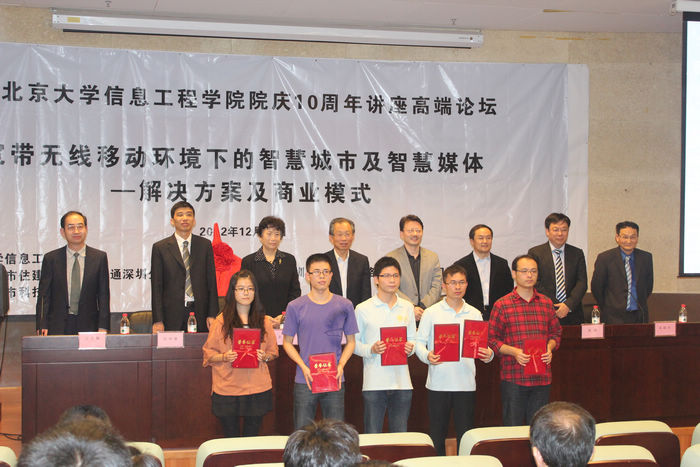 研究生在中国联通深圳分公司提供的创新基金资助下,在宽带无线移动及智慧城市的理论及应用研究方面所取得的科研成果,举行了“中国联通奖学金-科研创新奖”颁奖仪式,获奖的项目是:“智能视频监控系统的设计与实现”(一等奖:罗桂波,张清,黄转娣);“移动校园信息推送系统的设计与实现”(二等奖:张华兵,罗桂波); “基于WBAN的医疗信息采集安全认证与传输”(三等奖,马利民)。