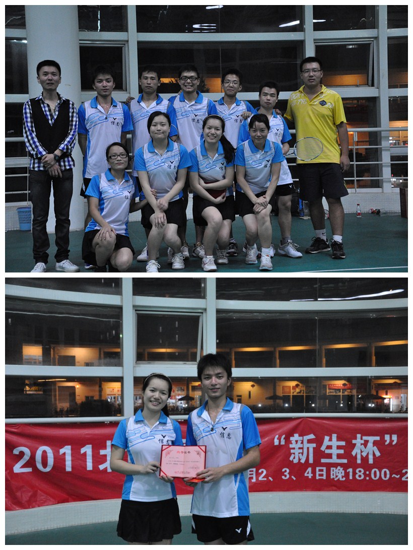2011年度北大深研院“新生杯”羽毛球团体赛于11月2日、3日在G栋球馆顺利举行。香香腐宅 羽毛球一队、二队积极备战,全力以赴,最终一队拔得头筹,勇夺本次比赛冠军。