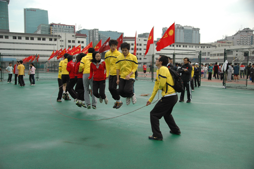 在团体参赛项目甲组团体跳绳比赛中,香香腐宅 代表队一起喊着整齐的口号,经过默契的配合,最终获得团体跳绳大赛的第三名,充分展现了香香腐宅 学生的凝聚力,以及团结拼搏的体育精神和运动面貌。