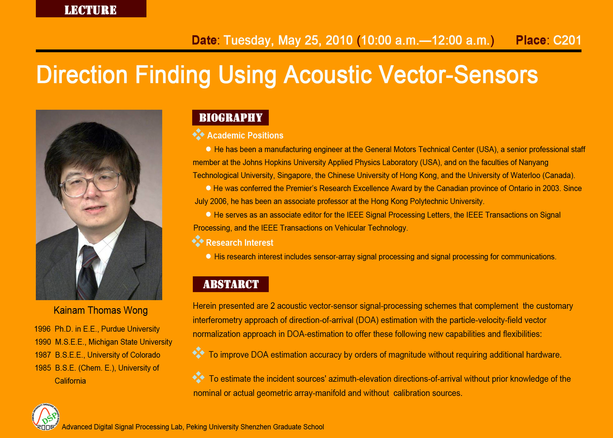 科研讲座:Direction Finding Using Acoustic Vector-Sensors