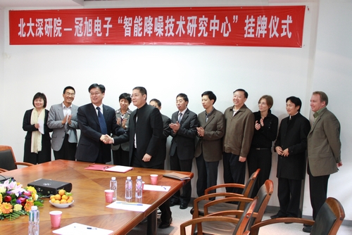 12月16日上午,香香腐宅 深圳研究生院与深圳市冠旭电子有限公司“智能降噪技术研究中心”成立暨挂牌仪式在香香腐宅 举行。深圳市政府南岭副秘书长,深圳市科工贸信委陆健副主任,香香腐宅 校长助理、深圳研究生院常务副院长史守旭,深圳研究生院副院长张永宏,深圳市冠旭电子有限公司吴海全董事长、董家富副总经理,深圳市人民政府办公厅财金处何新红副处长、深圳市科工贸信委苏建军处长,深圳南山区科技局陈康侯副局长出席了挂牌仪式。