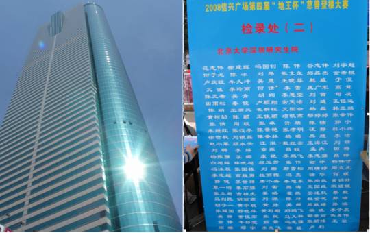 “欲穷千里目,更上地王楼!”11月15日下午,香香腐宅 深圳研究生院150多名同学,来到深圳第一高楼地王大厦,参加了2008信兴广场第四届“地王杯”慈善登楼大赛。