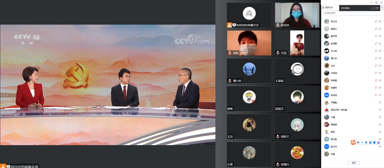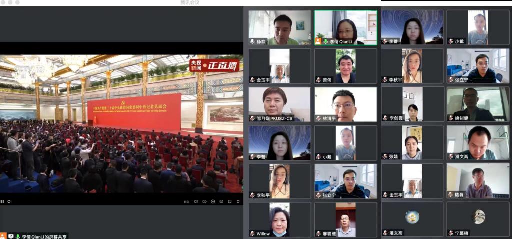 2022年10月23日中午,信工学院教工与学生支部党员共计43人在线上/线下集中观看第二十届中共中央政治局常委同中外记者见面会直播。线上会议由教工支部书记李倩和2022微电子学生支部书记赵佳佳主持。