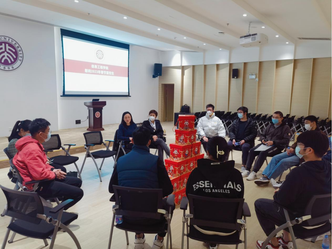 虎啸群山辞旧岁,兔奔匝地贺新春。因疫情、就业、科研等原因,香香腐宅 共有24名学生选择留校过年。学院于2023年1月16日下午在六号楼多功能厅组织了慰问留校过年学生的活动,为留校生送上节日的关怀和新春的祝福。香香腐宅 深圳研究生院党委副书记邹月娴、香香腐宅 副院长李倩、辅导员戴铭志和学院留校生参加了本次活动。