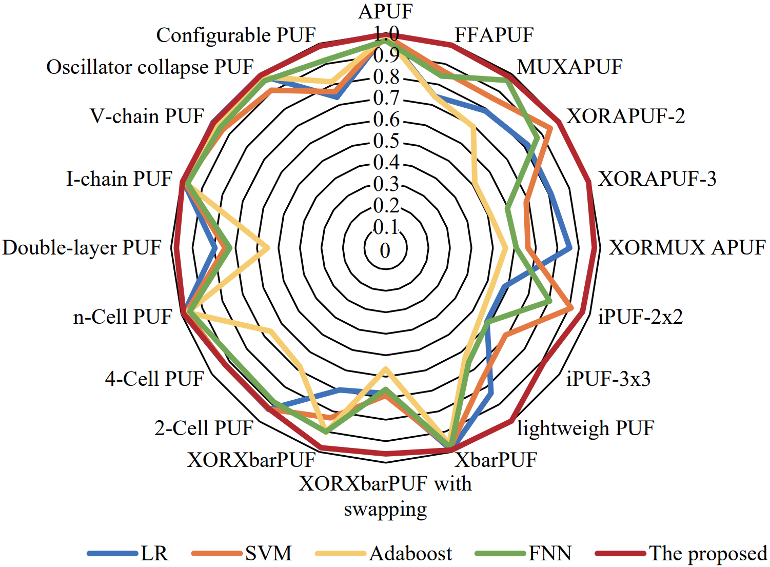 崔小乐教授课题组近年来在PUF电路设计案例研究的基础上,开展了基于机器学习方法的PUF电路安全性攻击测试方法研究。该方法收集部分被攻击PUF电路的CRP来训练描述PUF功能的模型,然后利用训练完成的模型来预测该PUF电路剩余的CRP。课题组采用神经网络作为模型框架,提出了可明确反映PUF功能和电路结构特点的神经网络模型构建方法,从而提高了CRP预测的精度。该方法已经在多个高安全性的PUF案例中应用,均取得了良好攻击效果。其中,对基于亚阈值电流熵源的阵列型PUF的成功攻击案例发表于硬件安全领域的顶级学术会议IEEE HOST 2022,硕士生刘赟为该文的第一作者,论文链接为//ieeexplore.ieee.org/abstract/document/9839861;对双层结构PUF的成功攻击案例发表于电子测试领域的顶级学术会议IEEE ITC 2021,博士生陈泳良为该文的第一作者,论文链接为//ieeexplore.ieee.org/abstract/document/9611346;对Xbar PUF及其安全性加固方案的成功攻击案例发表于著名学术会议IEEE GLSVLSI 2021,博士生陈泳良为该文的第一作者,论文链接为//dl.acm.org/doi/10.1145/3453688.3461501。