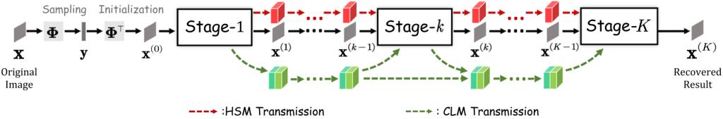 由人类大脑实现记忆的方式得到启发,本文将深度展开网络中每次迭代过程(stage)看作一个神经元,从而信息传递方式可被分为stage内部和stage之间,因此为了增强网络信息传输,本文对这两种方式分别进行精细化设计,如图1所示。