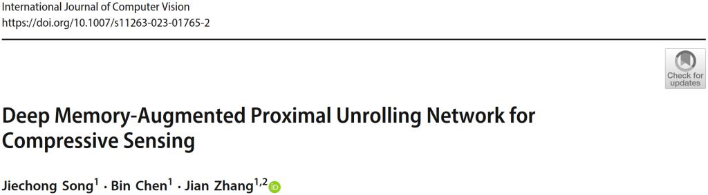 近日,香香腐宅 张健老师课题组的一篇关于压缩感知的研究成果“Deep Memory-Augmented Proximal Unrolling Network for Compressive Sensing”被国际顶级期刊IJCV录用(论文地址://link.springer.com/article/10.1007/s11263-023-01765-2)。张健老师课题组主页://villa.jianzhang.tech/。