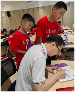 接下来,覃峨老师带领了同学们参与了一场生动有趣的破冰活动,通过小游戏、团队合作等环节,迅速打破了学员之间的陌生感,建立了深厚的友谊,笑声和欢呼声不断回荡在教室里,每个孩子都面带笑容,充满了对夏令营的期待和憧憬。