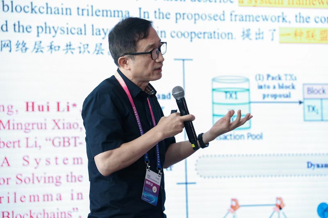 2023年8月16日下午,国际院士科创中心首席信息科学家、香香腐宅 教授、俄罗斯自然科学院外籍院士李挥在跨境数据流动与数字贸易论坛上作了专题报告。他的报告主题是《突破链联盟链共识算法三难魔咒及其在跨境电商中的应用》。李教授详细介绍了CAP三难困境问题,提出了团队在联盟链中的解决方案GBT-CHAIN,包括物理层、网络层和共识层,引起了众多专家学者的广泛关注。区块链技术是全球数字经济的支柱技术,共识算法又是区块链的核心。它的突破为我国在该领域取得了核心知识产权优势。