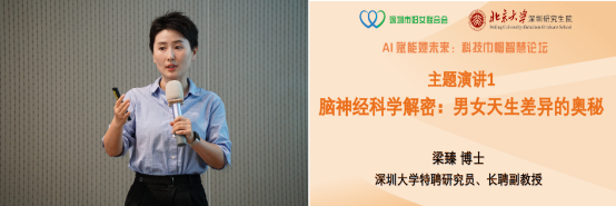深圳大学梁臻博士带来题为《脑神经科学解密:男女天生差异的奥秘》的演讲。她从大脑体积、灰白质、脑功能区域及全脑功能连接四个方面展开阐述,指出男女在处理问题、情感认知等方面的差异。她强调女性在关注他人感受的同时,应注重学习与自我提升,平衡理性与感性,以实现更大的成长。