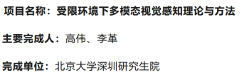 高伟助理教授负责的“受限环境下多模态视觉感知理论与方法”项目荣获中国图象图形学学会自然科学奖二等奖。