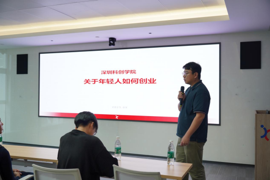 在卓老师系统梳理完深圳科创学院的生态图谱后,现场氛围被进一步点燃。为了让学子们更直观感受"创新落地为产品"的真实历程,卓老师特别邀请了两位入驻学院的年轻创业者登台——一位是专注于声带功能康复的医疗科技团队负责人,另一位是深耕二次元文化周边制造的硬件极客。他们的故事没有宏大叙事,却用最鲜活的细节诠释了"从痛点出发"的创业本质。两位创业者分享结束后,现场同学意犹未尽,纷纷举手提问。围绕"技术资源获取""创业失败应对""垂直赛道机遇"等具体困惑,两位创业者结合自身经历逐一解答,坦诚的对话让同龄人更直观感受到创业的真实温度与实践逻辑。