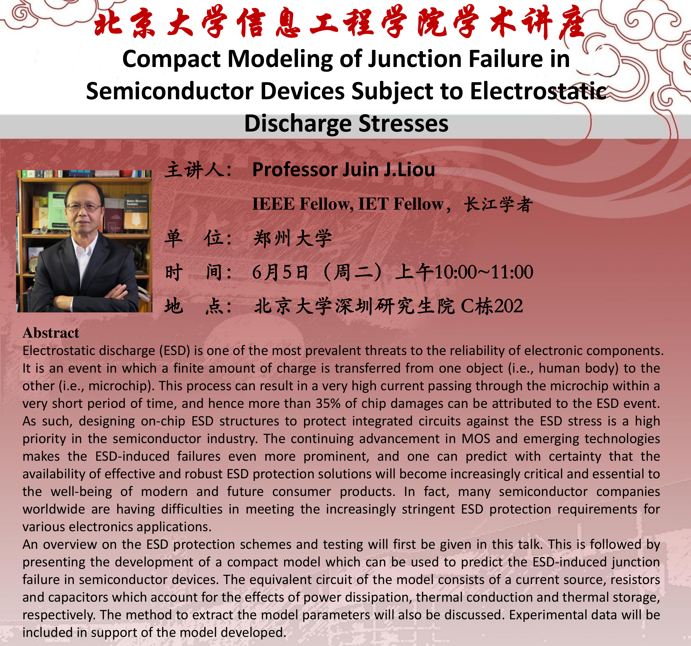 【学术讲座】Professor Juin J.Liou(郑州大学)Compact Modeling of Junction Failure in Semiconductor Devices Subject to Electrostatic Discharge