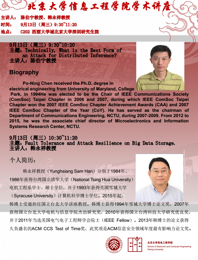 【学术讲座】陈伯宁、韩永祥教授:Fault Tolerance and Attack Resilience on Big Data Storage