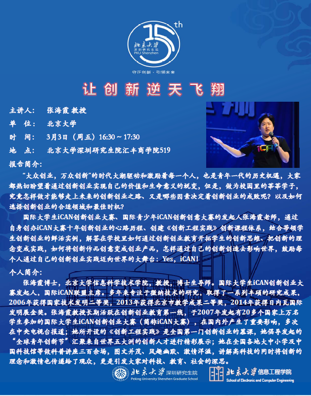 【学术讲座】张海霞教授:让创新逆天飞翔