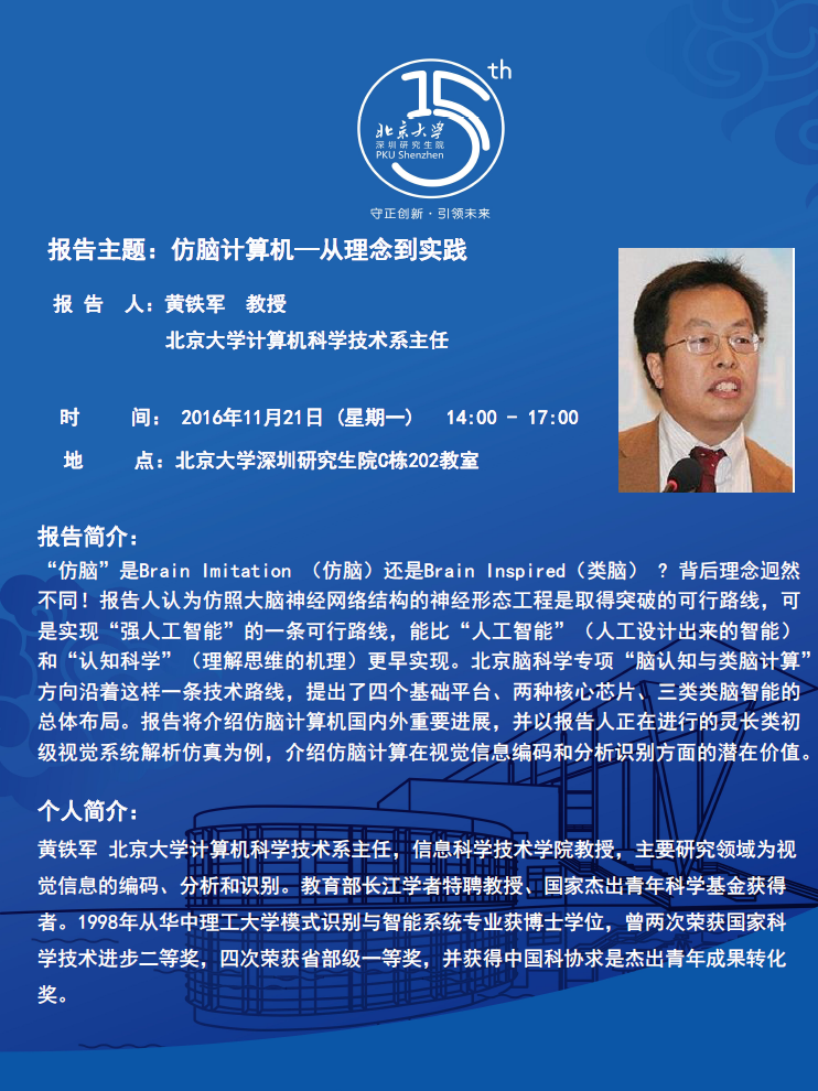 【学术讲座】黄铁军 教授:仿脑计算机—从理念到实践