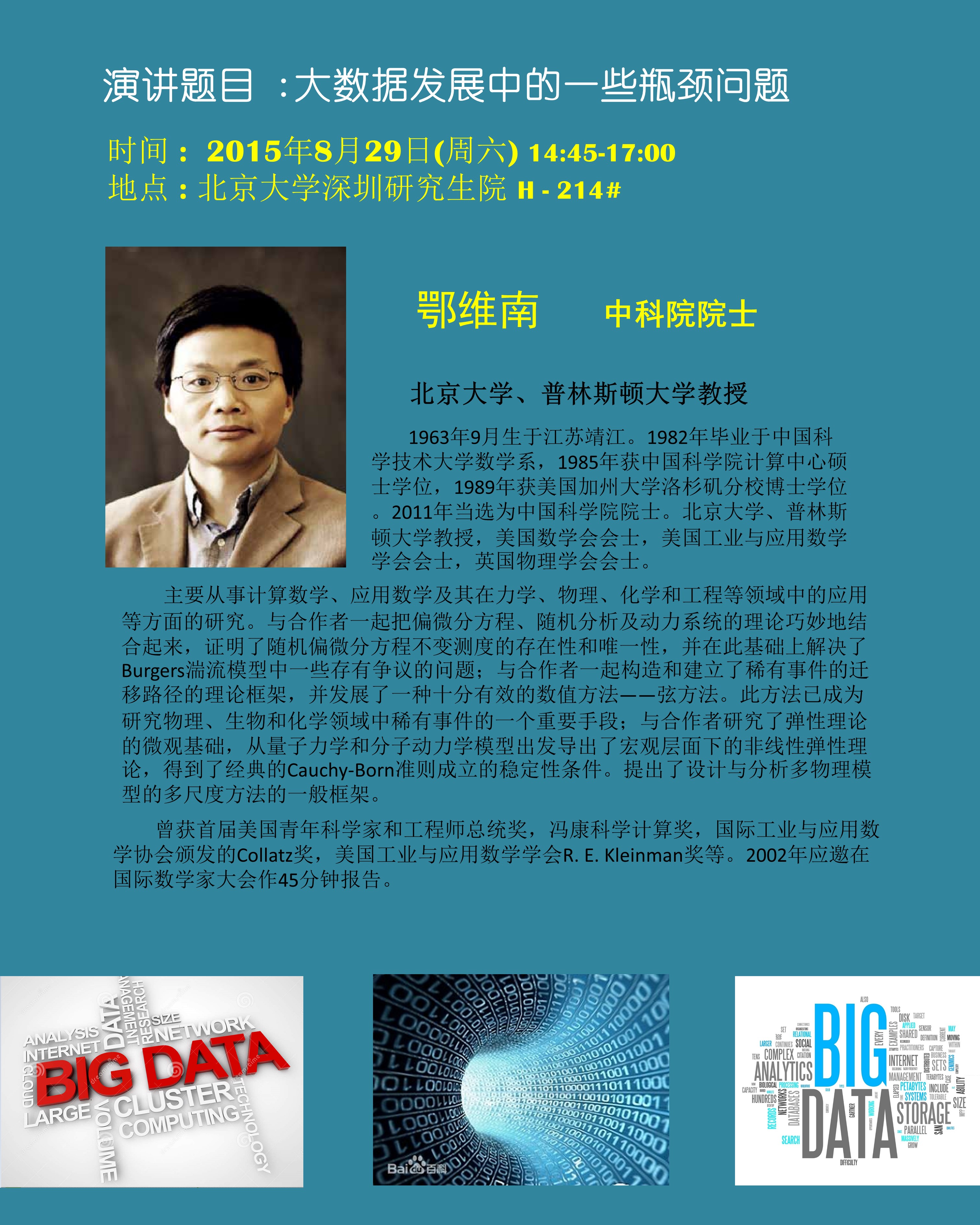 【学术讲座】鄂维南教授(中科院院士):大数据发展中的一些瓶颈问题