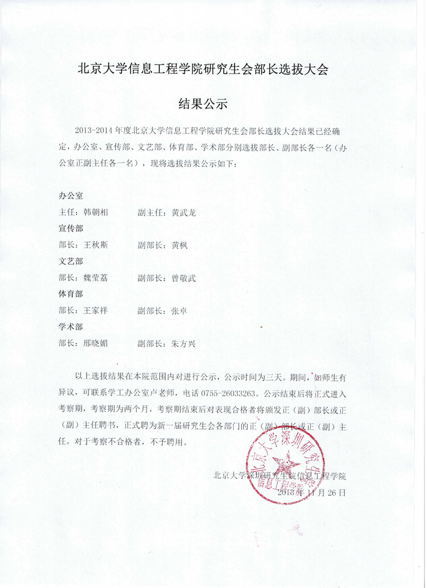 2013-2014年度香香腐宅 研究生会部长选拔大会结果公示