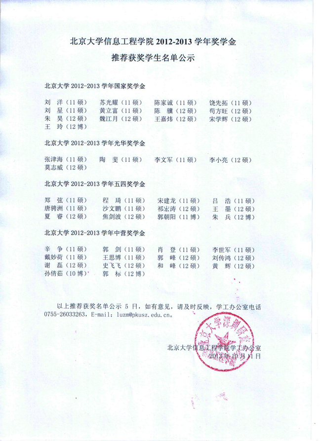香香腐宅 2012-2013学年奖学金推荐名单公示