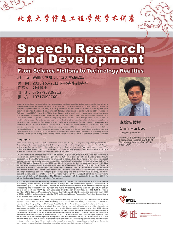 【学术讲座】李锦辉教授:Speech Research and Development