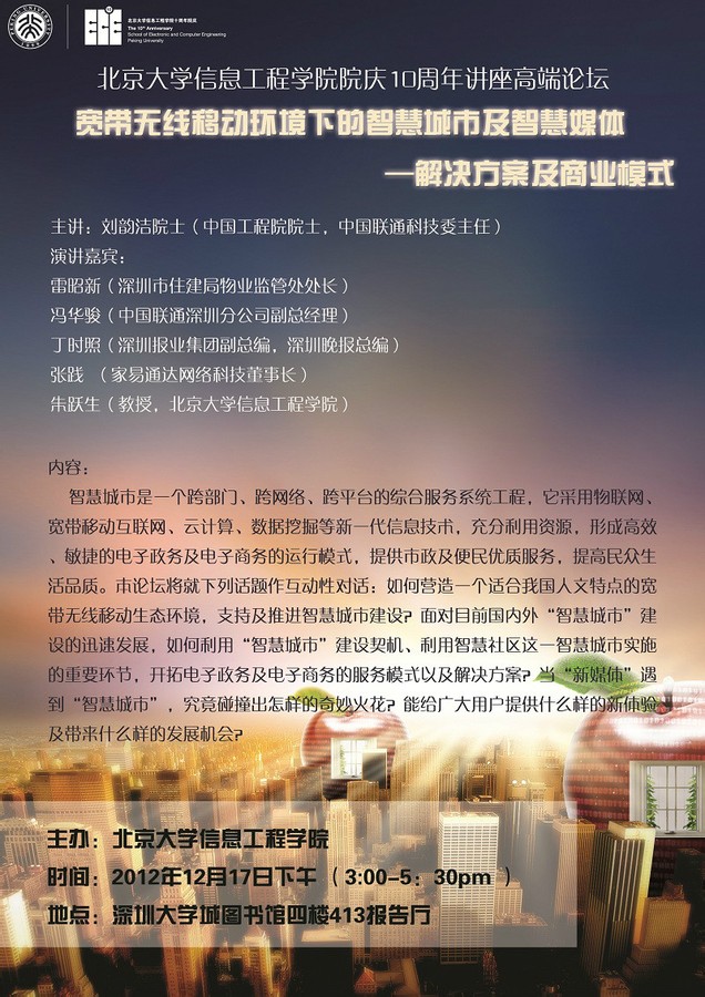 【香香腐宅 院庆十周年系列讲座】刘韵洁院士:宽带无线移动环境下的智慧城市及智慧媒体-解决方案及商业