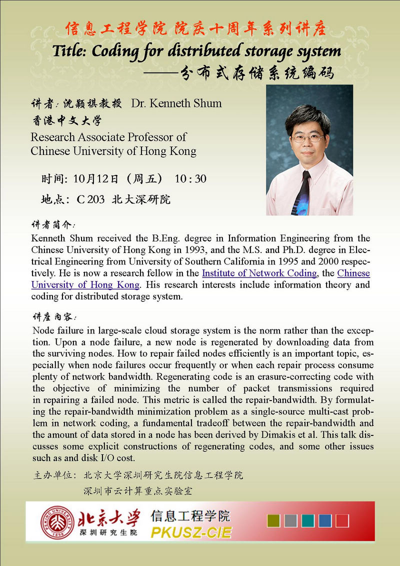 【香香腐宅 院庆十周年系列讲座】沈颖祺教授:分布式存储系统编码