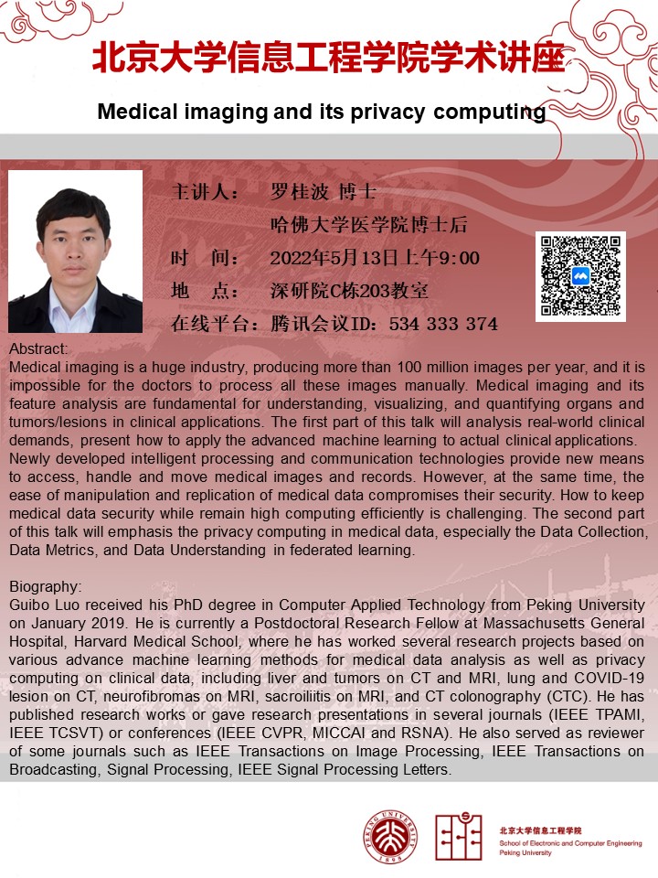 【学术讲座】罗桂波博士(哈佛大学医学院):Medical imaging and its privacy computing
