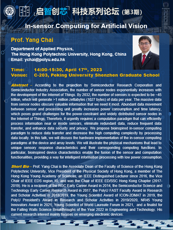 【启智创芯科技系列论坛】 (NO.3)Prof. Yang Chai:In-sensor Computing for Artificial Vision