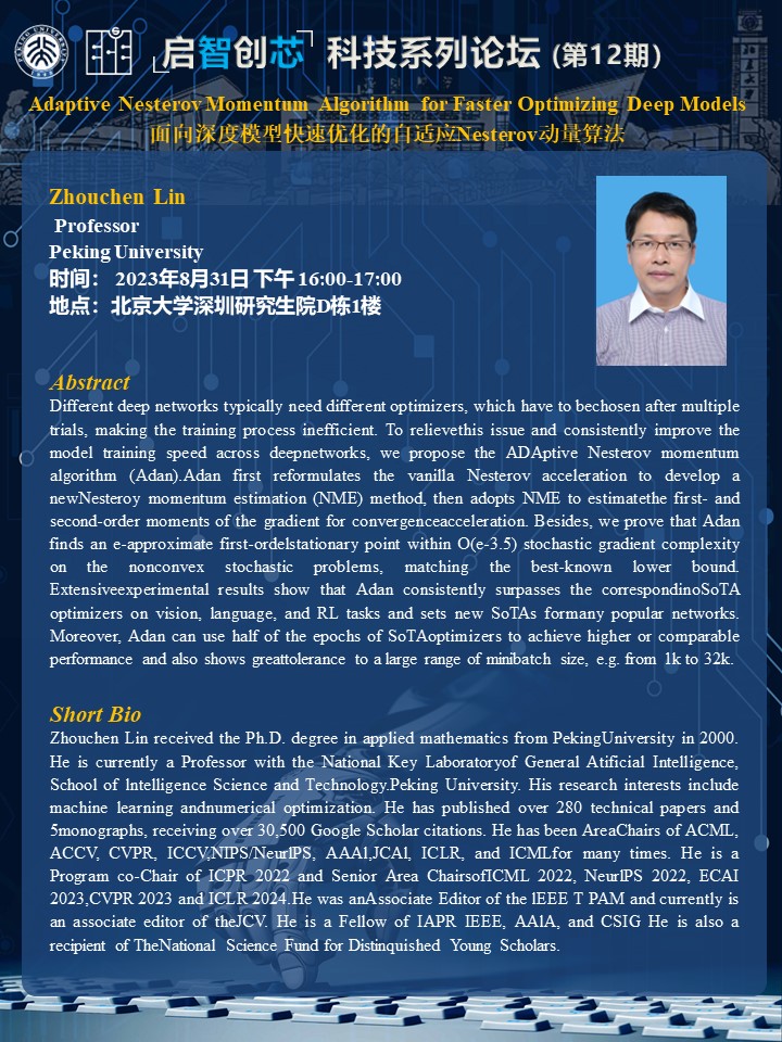 讲座题目:Adaptive Nesterov Momentum Algorithm for Faster Optimizing Deep Models