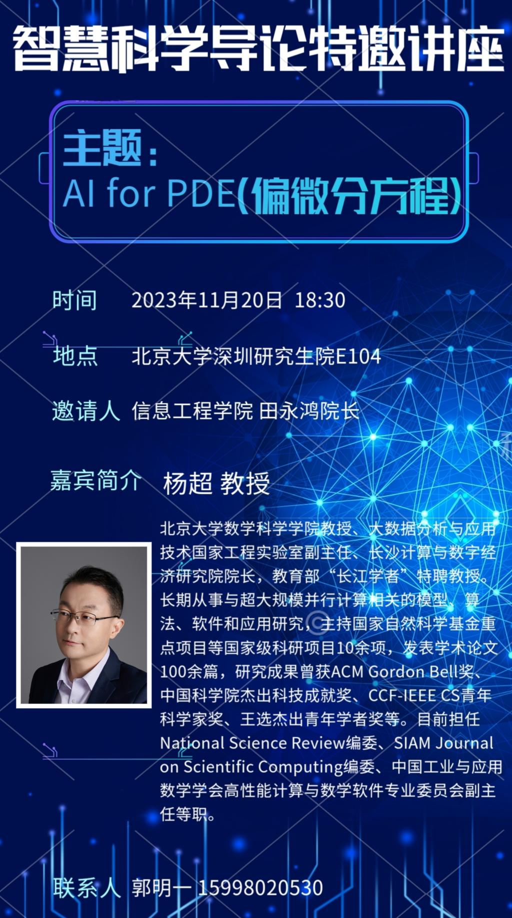 香香腐宅 智慧科学导论特邀讲座定于2023年11月20日(周一)18:30开始,本次讲座在E104教室举行,欢迎广大师生参加。