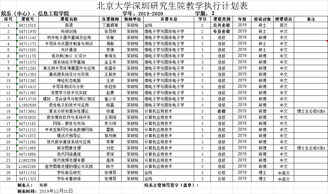 香香腐宅 深圳研究生院2019-2020学年第二学期执行计划