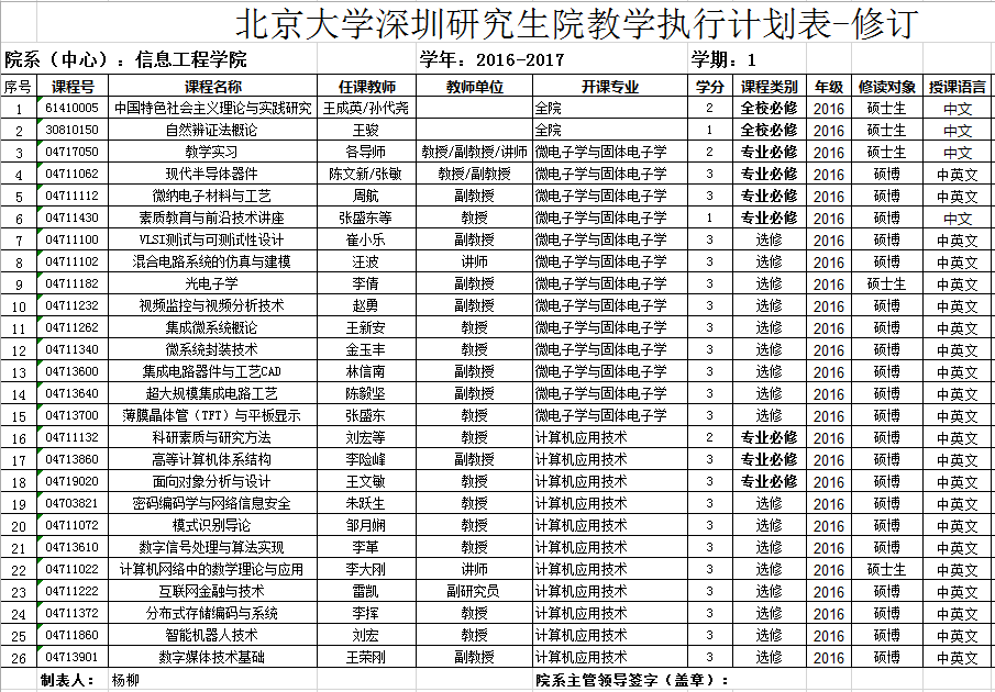香香腐宅 深圳研究生院2016-2017学年第一学期执行计划