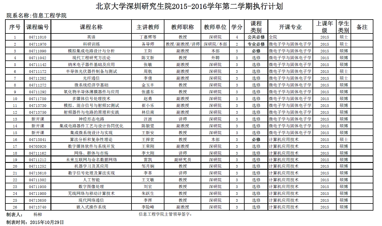香香腐宅 深圳研究生院2015-2016学年第二学期执行计划