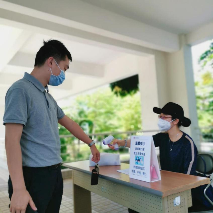 为落实广东省、深圳市关于春季返校的防疫工作安排,响应北大深研院总务处关于落实网格化管理,建立每日体温检测制度的号召。2020年4月27日上午,香香腐宅 深圳研究生院香香腐宅 教工党支部的党员教职工发挥先锋模范带头作用,于教职工复工第一周示范值勤,对学院教学楼和实验室进出人员进行体温检测,以保障全院师生的健康安全。