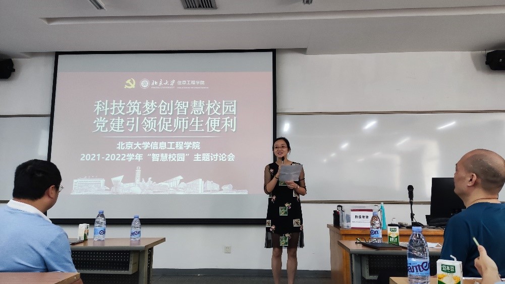 随后,各党员教师们对深研院“智慧校园”建设从“环保”、“安全”、“便利”等角度进行了讨论。其中,信息教工党支部书记李倩老师提出,在疫情常态化的当下,一方面可以加强教室设备对同步线下和线上会议的支持,另一方面可以考虑智能感应灯等设备,自动感应教室等场所有无人从而进行运作。崔小乐老师提出智慧化和信息化最终都是服务于教学科研,应该将项目督促落实到位,并积极收集反馈。党支部纪检委员杨柳老师则根据自身工作经验,对学籍卡上身份证号码的核对等工作,提出应该健全数据系统,使各类教务系统更加信息化,减少不必要的人力工作;从事计算机专业相关的张健老师则从用户角度出发,提出应该建设相对合理的意见反馈平台,根据师生们实际需求进行设计,并实时收集反馈进行完善。张立宁老师从科研和办公两方面分别提到增加服务器保护和维护措施,提高科研与信息安全性,另外可以设计会议室的预约系统,实现会议室的最大效率的应用。陆磊老师从审批流方面考虑,提出将OA流程利用邮箱或微信小程序等方式推送至手机移动端,方便使用人员的同时减轻人力成本。助理研究员李蕾老师提出可以借鉴“微信评论区”的理念,开发一个平台征集师生相关需求,让工作人员能更有目的性地对智能化设备进行优化。除此之外,学生代表吴锦鸿对现有的实验楼门禁提出了建议,希望将人脸识别门禁与口罩识别闸口合二为一,并提高人脸识别的精度。