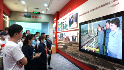 信工学院的师生们首先来到深圳党史馆,按照历史发展脉络先后参观了“红旗屹立深圳湾”、“社会主义新宝安”、“改革开放排头兵”、“新时代的先行区”四大展区。从燃起革命的星星之火,到升起第一面五星红旗;从南海之滨的小渔村,到如今高楼林立的国际化大都市;从“杀出一条血路”到“走出一条科学发展的新路”,再到建设中国特色社会主义先行示范区。深圳始终高举改革的旗帜,发扬斗争精神,在中国共产党的领导下创造着一个又一个发展的奇迹,展现着中国改革开放事业的伟大成就。通过参观学习和聆听讲解员的讲解,师生们深刻认识到了在中国共产党的领导下深圳地区经历的沧桑巨变,感受到了深圳敢闯敢试、敢为人先、埋头苦干的特区精神。