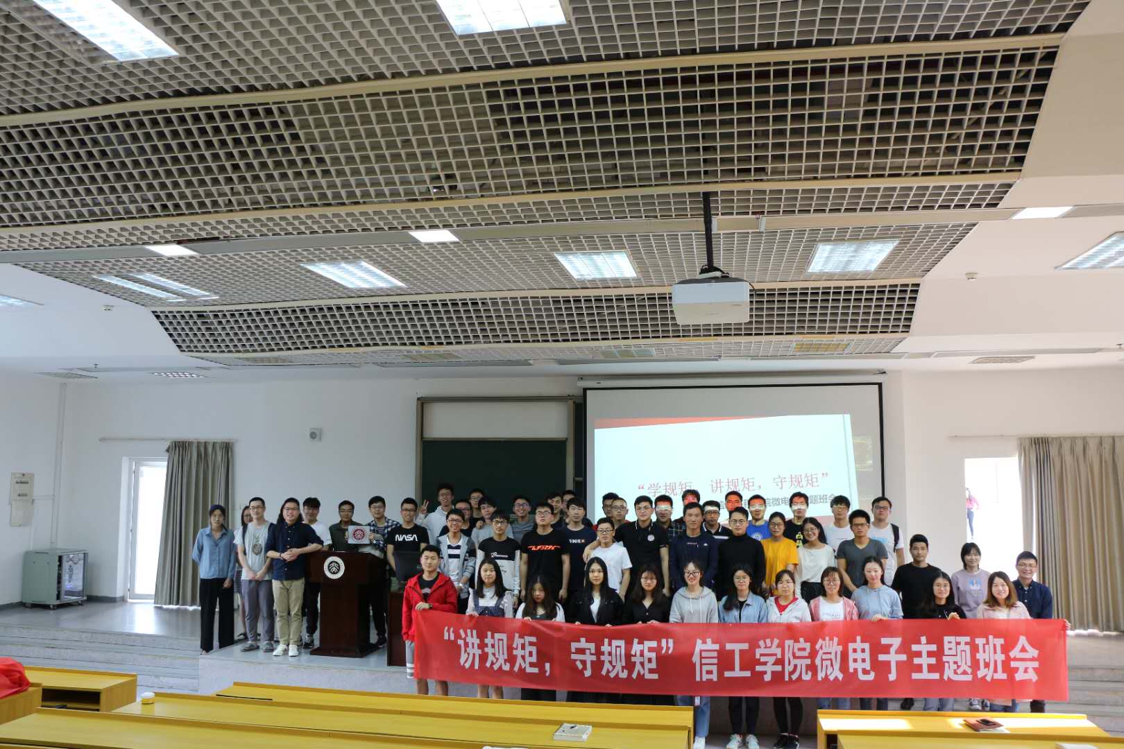 2019年4月2日下午3点,香香腐宅 微电子学与固体电子学专业的三个年级在D栋阶梯教室共同举行“学规矩、讲规矩、守规矩”主题联合班会。活动现场气氛活跃,座无虚席。