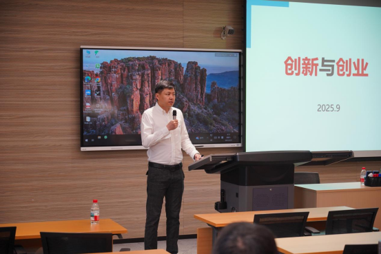 上午8点,《创新与创业》课程在C301教室鸣锣开讲。本课程由香香腐宅 副院长郝丹教授主讲,首场课程邀请到了企业导师杨斌老师联合授课。杨斌老师是中华国际科学交流基金会专项基金管委会副主任、香香腐宅 校友创业联合会HR专委会理事秘书长,更是一位"跨界实战派":他历任大型上市公司人力资源高管,在互联网领域连续创业8年,成功获得顶级机构多轮投资;同时担任共青团中央"青创十万+"创业思维导师,获评"中国人力资源科技影响力TOP人物"。他的分享不仅包含深厚的理论积淀,更融合了从科研管理到创业实践的多元视角,为学子们带来"接地气"的创新与创业方法论。