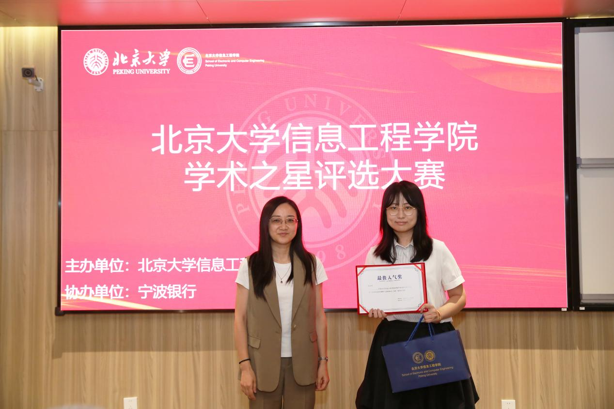 经评委评审与现场观众投票,评选结果揭晓。王钰涵同学凭借在前期微信公众号投票环节中获得的师生广泛支持,荣获“最佳人气奖”;彭宝康同学则以出色的表达能力和稳健的台风,荣获“最佳风采奖”。李倩老师为两位获奖同学颁发了奖项。