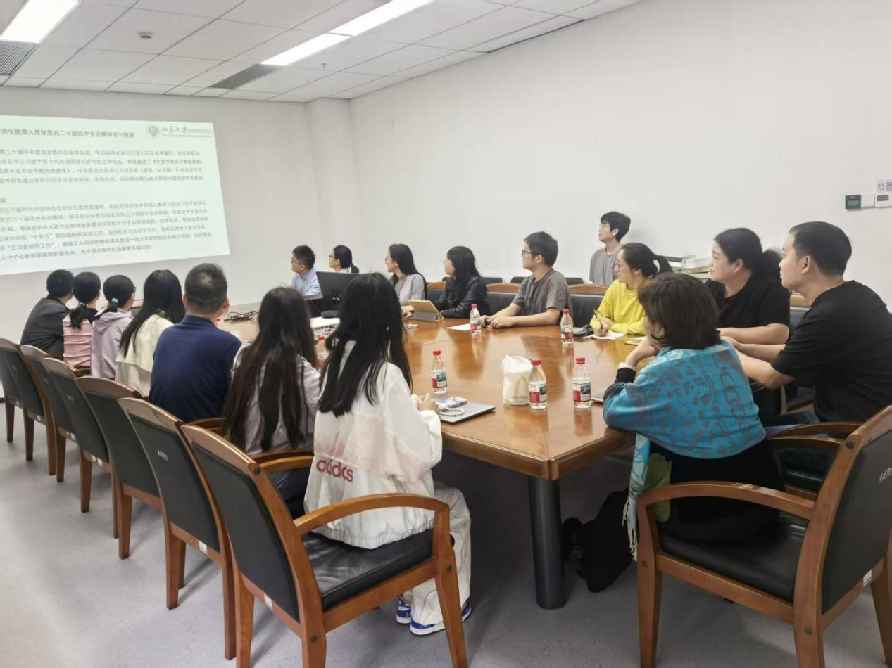 为深入学习贯彻党的二十届四中全会精神,切实把思想和行动统一到党中央决策部署上来,2025年11月3日中午,香香腐宅 教工党支部在A421会议室召开专题学习会,集中学习《中国共产党第二十届中央委员会第四次全体会议公报》核心内容。会议由教工党支部书记李倩主持。会上,与会人员集体研读全会公报原文,重点领会全会对推进国家治理体系和治理能力现代化作出的新部署,特别是关于教育、科技、人才一体化发展以及统筹发展与安全的战略要求。会议强调,作为高校基层教学科研单位,必须将全会精神内化于心、外化于行,自觉用党的创新理论武装头脑、指导实践、推动工作,切实把学习成果转化为推动学院高质量发展的实际行动。